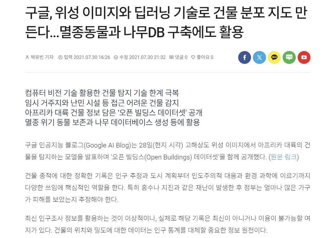 - 모델 개발 과정에서 구글은 175만 채의 건물에 10만 개의 이미지를 수동으로 라벨링 해 교육 데이터셋을 확보