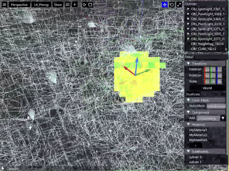 현재 구현 상태는 SpotLight 또한 바운딩 볼륨 구로 가정하였습니다만, 이는 부정확한 충돌을 야기할 수 있습니다. 이는 Spot Light의 각도가 각각 둔각, 예각일 때에 바운딩 볼륨 구는 넓게, 특히 원뿔의 축 반대 방향을 넉넉히 감싸기 때문에 False Postive를 대폭 생성합니다.