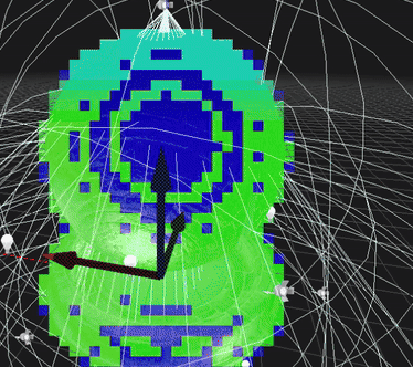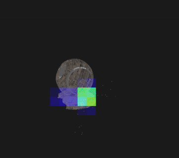 아래는 위 수식을 통해 수행한 카메라 구 - 원뿔 교차 데모 영상입니다. 영역 안에 들어오면 파랑색으로 HeatMap을 표기했습니다.