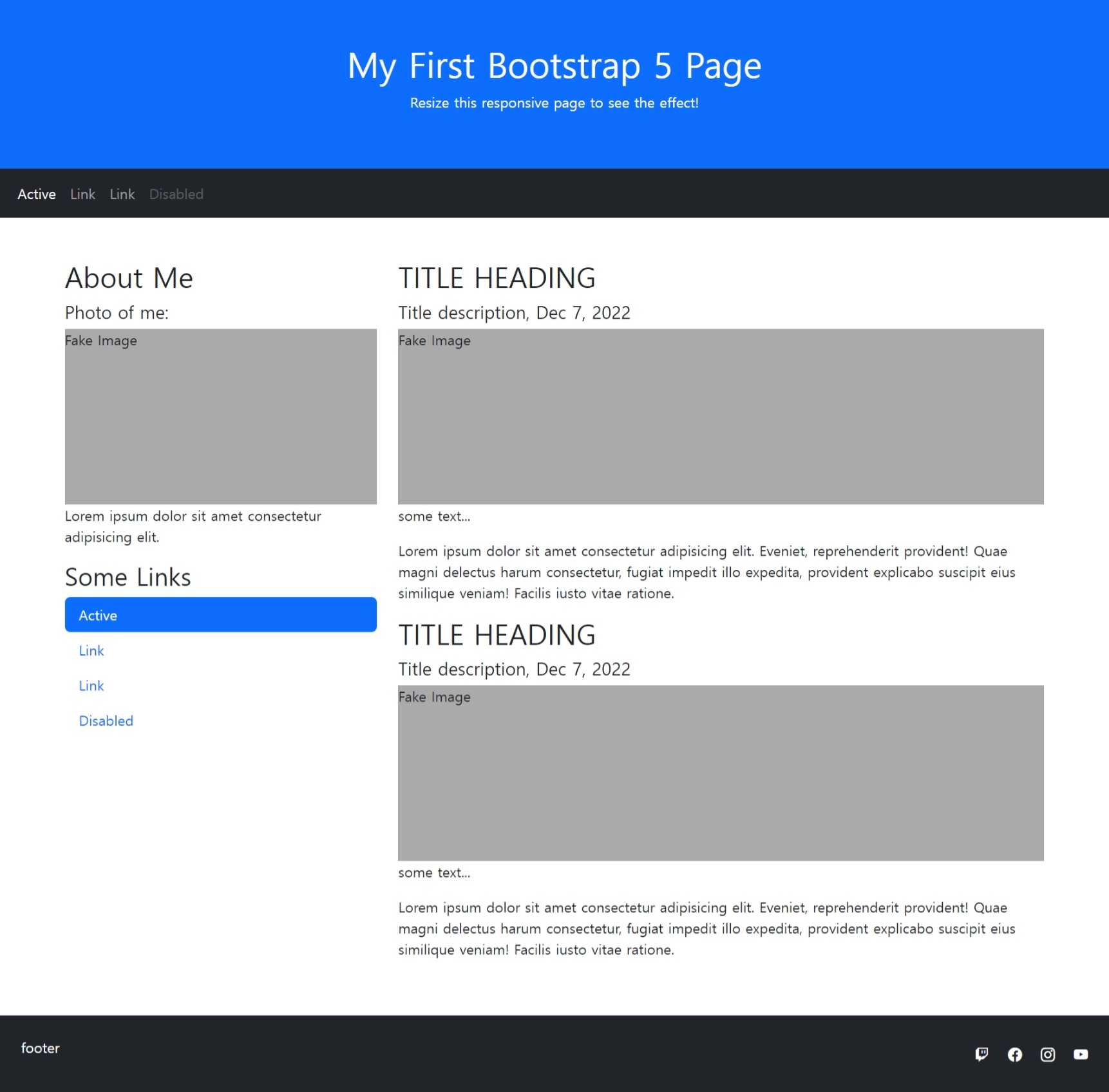 <h1>My First Bootstrap 5 Page</h1>