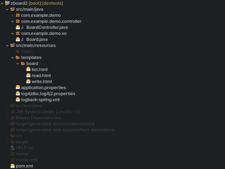이제 src/main/resource 폴더에 board 폴더를 만들고 그 안에 list.html