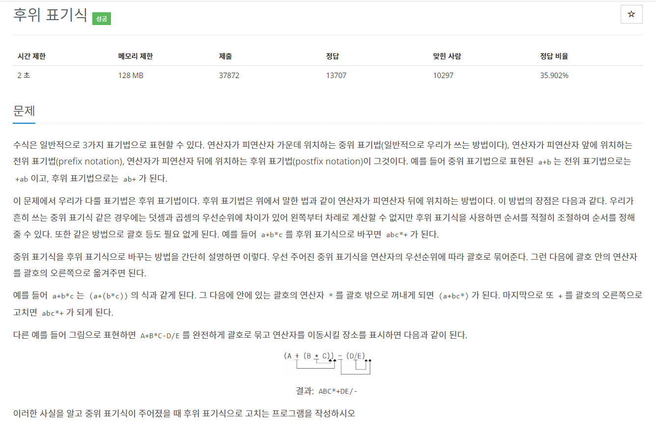 입력 문자의 우선순위가 스택 맨 위에 있는 연산자의 우선순위보다 낮은 경우