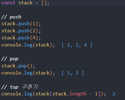 Stack은 Array와 push, pop 메서드로 표현이 용이하다.