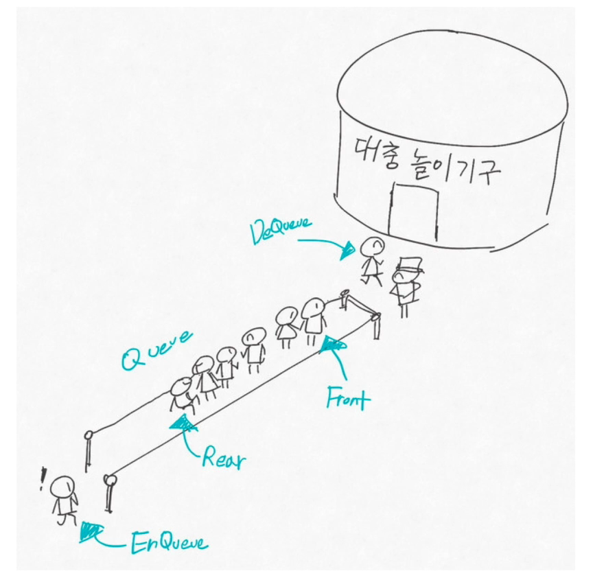 큐 자료구조는 놀이기구를 타기 위한 대기 줄로 비유할 수 있다.
