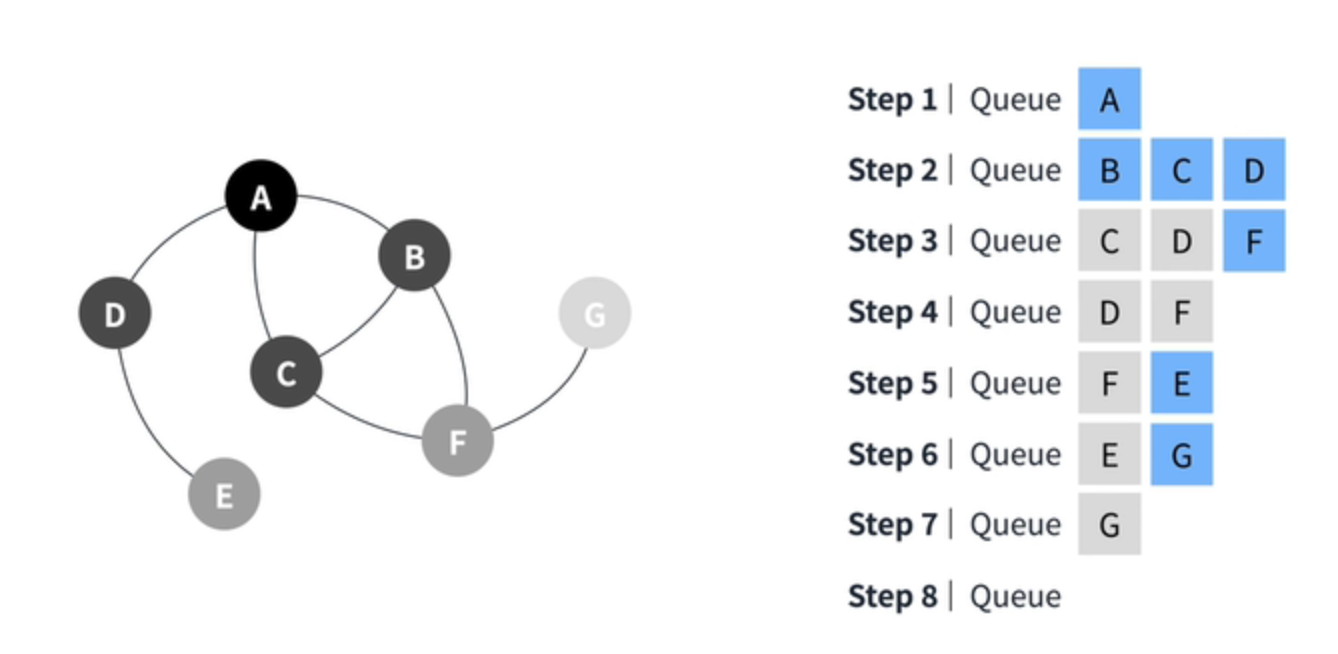 그래프 탐색 알고리즘으로 같은 깊이에 해당하는 정점부터 탐색하는 알고리즘