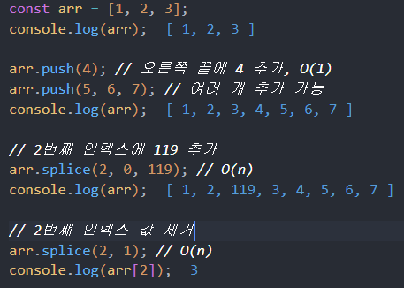 arr.push(4); // 오른쪽 끝에 4 추가, O(1)