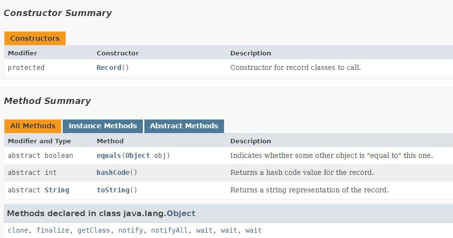 즉, record는 선언만으로도 이 메서드들을 명시적으로 작성할 필요가 없다.