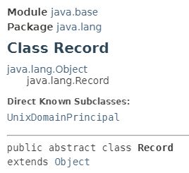 record는 상속을 지원하지 않는다. 다른 클래스를 상속할 수 없고, record를 상속받을 수도 없다. 다만, 인터페이스는 구현할 수 있다.