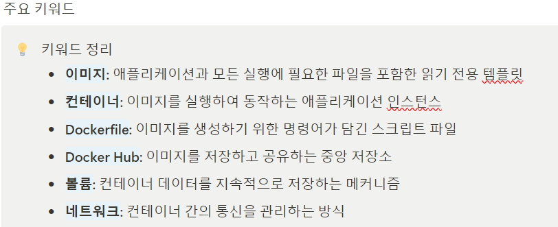 - 주요 특징으로는 컨테이너화, 경량, 이식성, 확장성 등이 있다.
