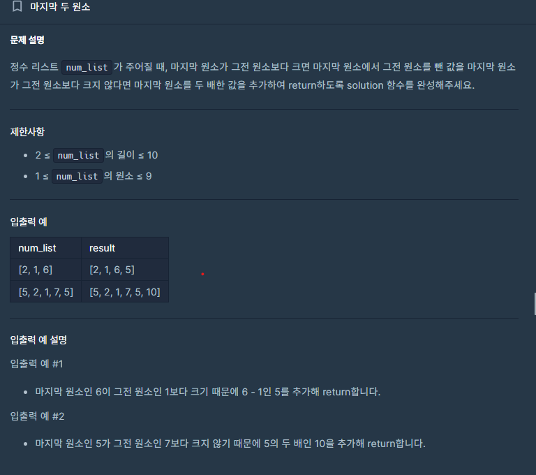 마지막 인덱스의 값이 바로 앞 인덱스의 값보다 작으면 마지막 값 - 그전 값