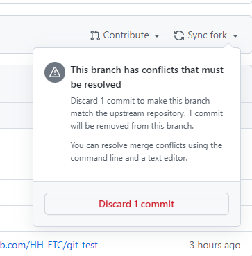 Pull Request를 하기 전에 먼저 Origin Repository와 버전을 맞춰줘야 한다. Remote Repository의 Git페이지에 들어가서 Sync fork를 합니다.