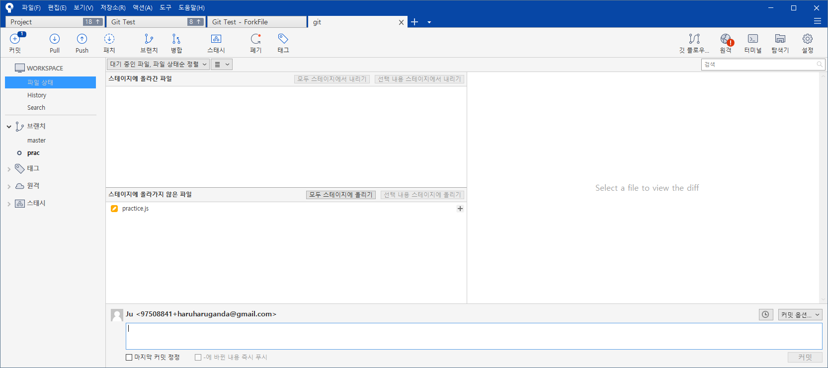 오늘 U님 덕에 깃의 천재라고 불리시는 K님한테 배웠다.