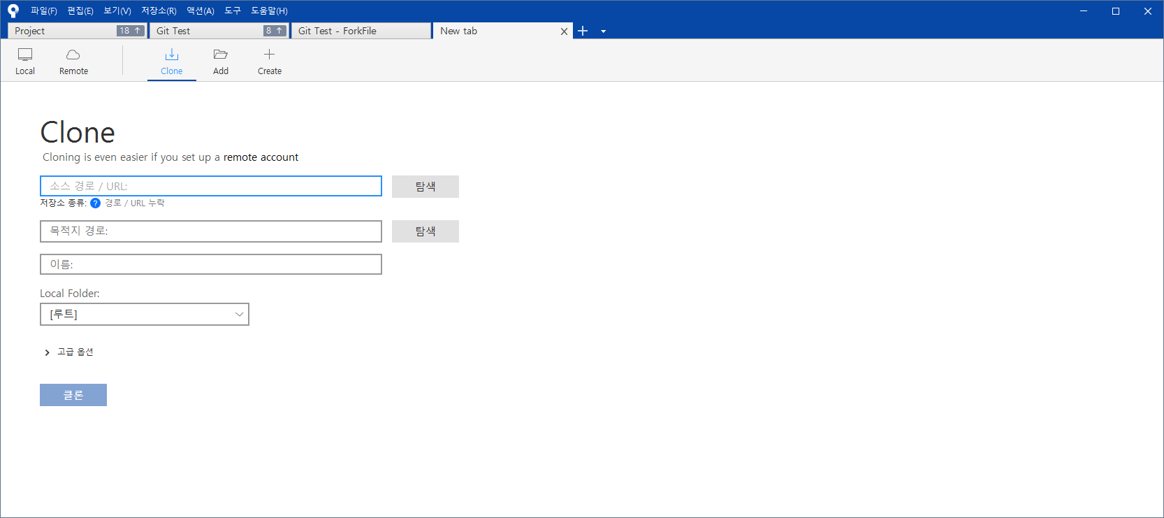 SouceTree에다가 clone을 한다.