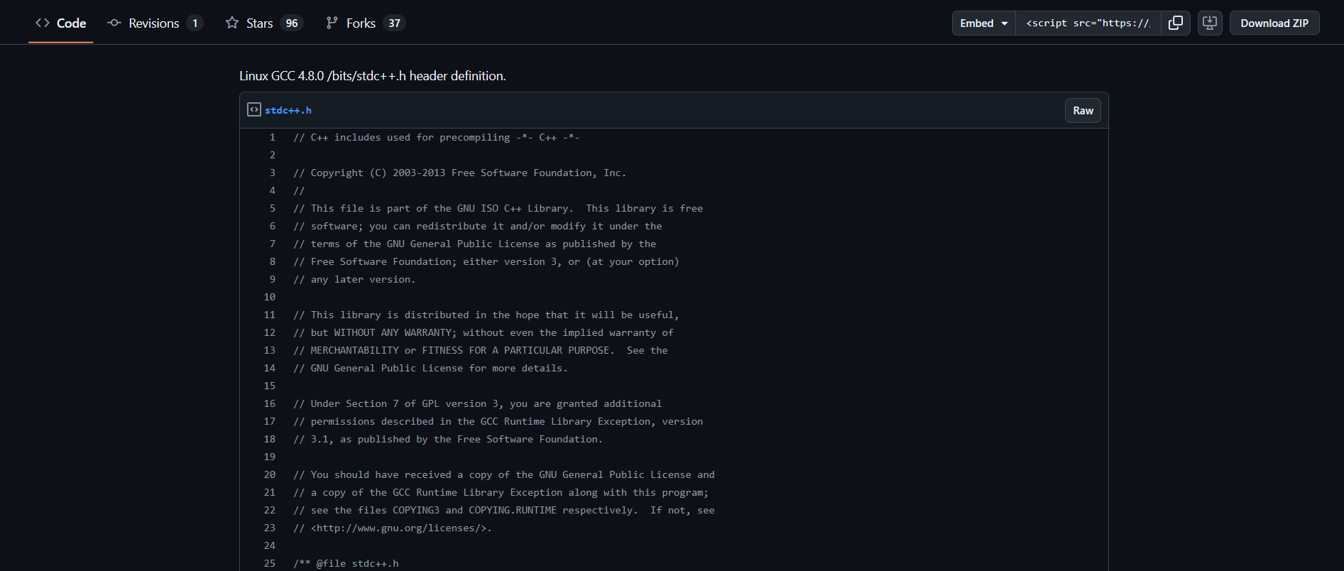 거의 모든 C++ 표준 라이브러리를 포함하는 GNU C++(GCC) 비표준 헤더 파일이다.