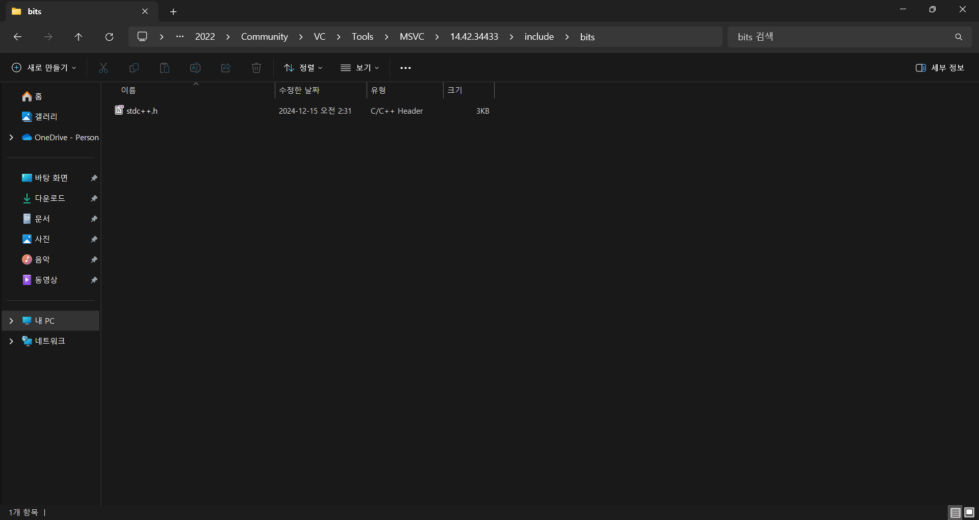 폴더가 위치하나, 다른 경우 3번 과정을 수행한다.C:\Program Files\Microsoft\Visual\Studio\2022\Community\VC\Tools\MSVC\14.42.34433\include