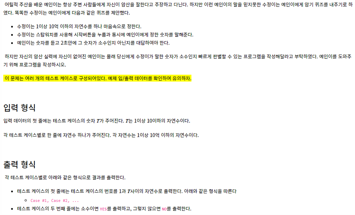 //자연수 T가 소수인지 판별해 Y/N 출력