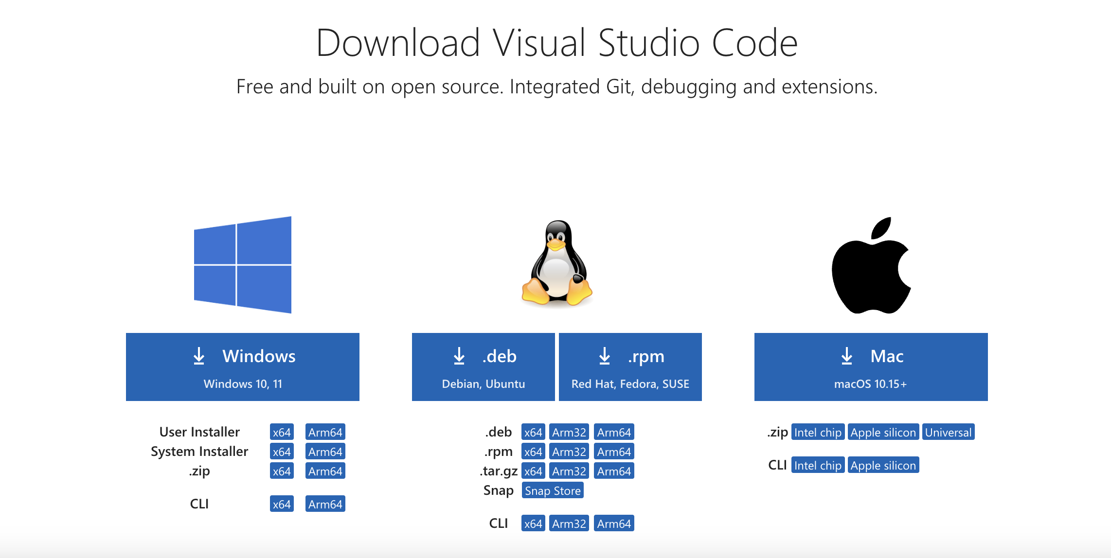 사용자의 개발 환경에 맞게 Windows, macOS, Linux 중 하나로 다운로드를 진행합니다.