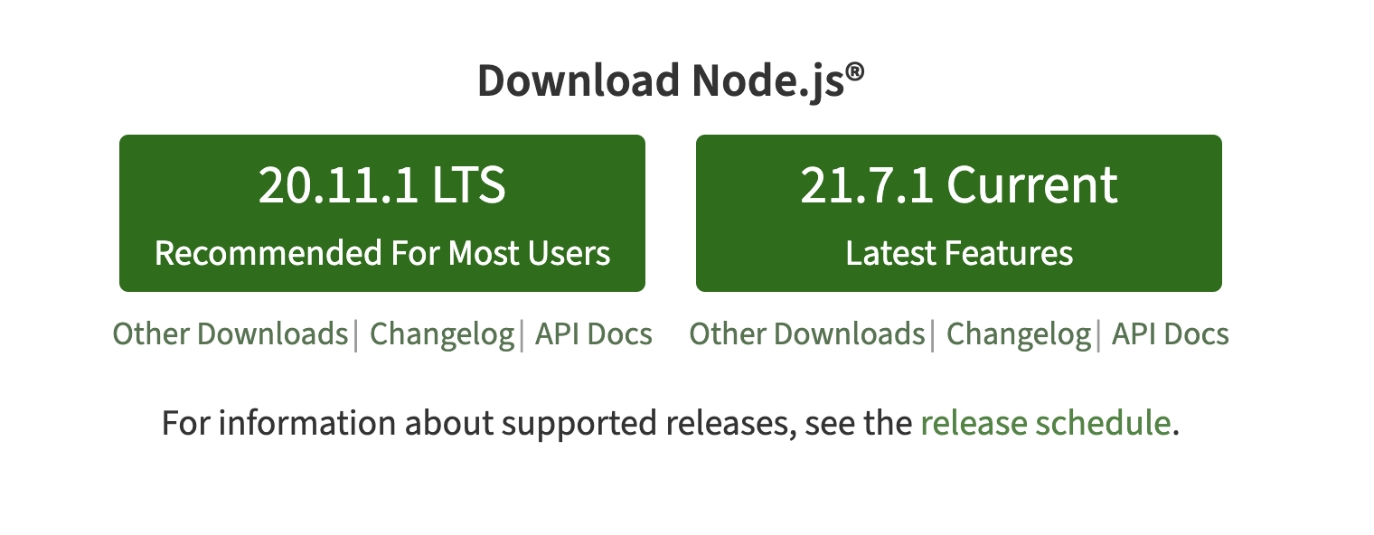 자세한 내용과 다운로드는 Nodejs 공식 사이트를 참고하시기 바랍니다.