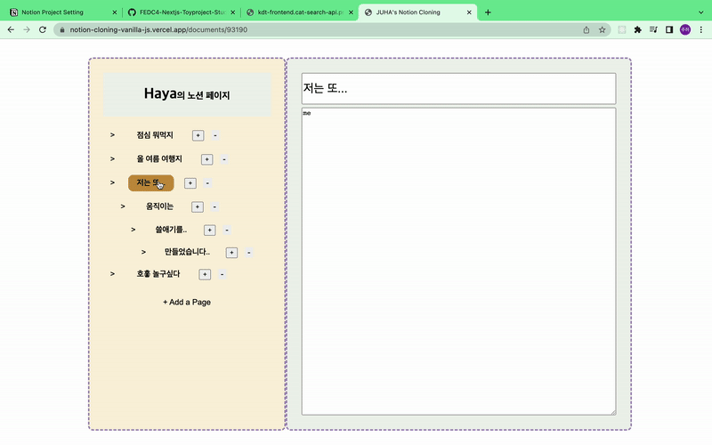 바닐라 JS만을 이용해 노션을 클로닝합니다.