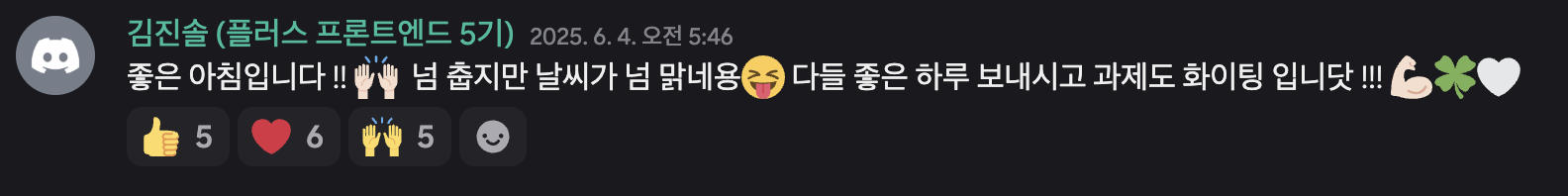 그래도 이 과정을 함께한 사람들과의 대화 덕분에, 단순히 코드나 기술을 넘어서 개발자라는 일의 결, 태도, 방향에 대해 더 많이 생각할 수 있었다.