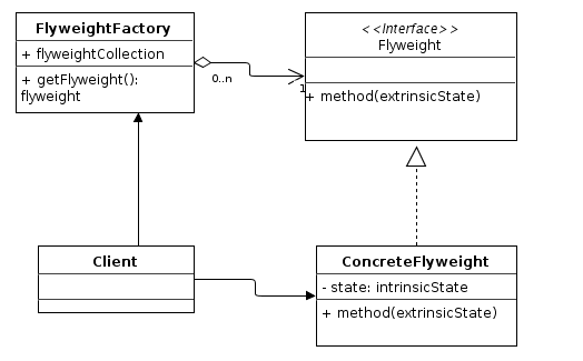 Flyweight 객체의 생성과 공유를 담당.Flyweight가 있으면 반환, 없으면 생성 후 캐싱.Flyweight 객체를 관리하는 컬렉션을 유지한다.Client