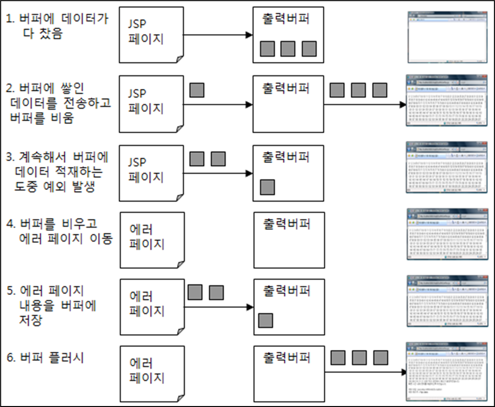 에러 페이지는 버퍼가 플러시 되기 전에 처리되어야 함