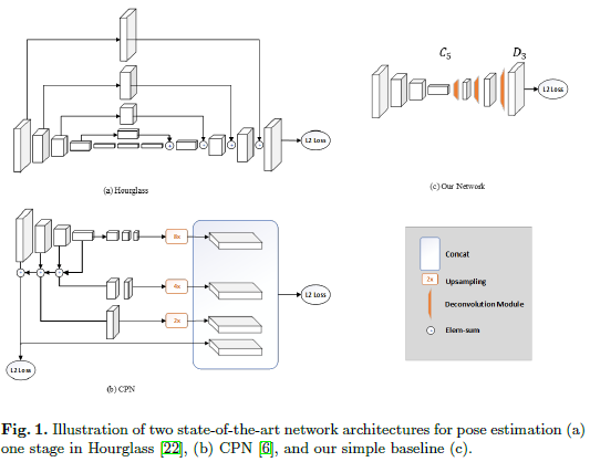 - ResNet을 기반으로 몇 개의 디컨볼루션 레이어를 추가한 간단한 구조로, 히트맵(heat map)을 추정합니다.