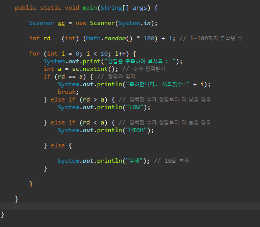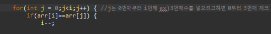 중복된 값이 입력되면 다시 한번 숫자를 받아오게 하는 부분