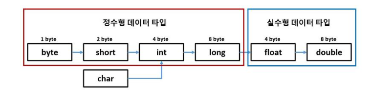 - 작은 크기 타입 = (작은 크기 타입)큰 크기 타입
