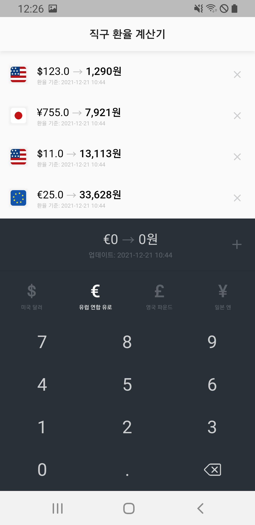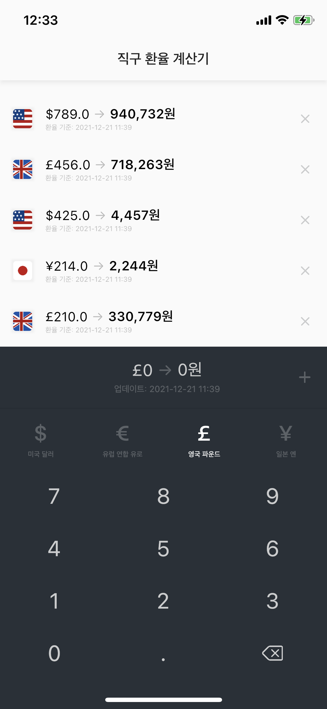 제목에서 직관적으로 알 수 있듯이 간단한 환율 계산 앱입니다. 1시간 단위로 환율을 서버에서 API 를 통해서 가져오며, 해당 계산을 저장하여 현재 환율과 비교를 해 볼 수 있습니다.