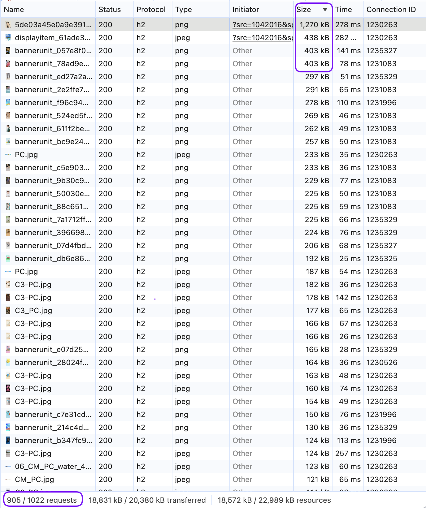 쿠팡의 이미지 요청 기록. 약 900여개의 요청 중에 1mb가 넘는 이미지는 하나 뿐이다.>이 외에도 effort와 같은 개념도 존재하지만, 여기서는 다루지 않겠습니다.