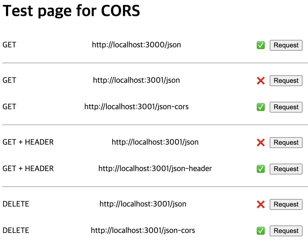 - 예를 들어, A-domain.com에서 B-domain.com의 리소스에 함부러 접근하여 악용하는 등의 문제점을 막기 위한 보안 조치입니다.