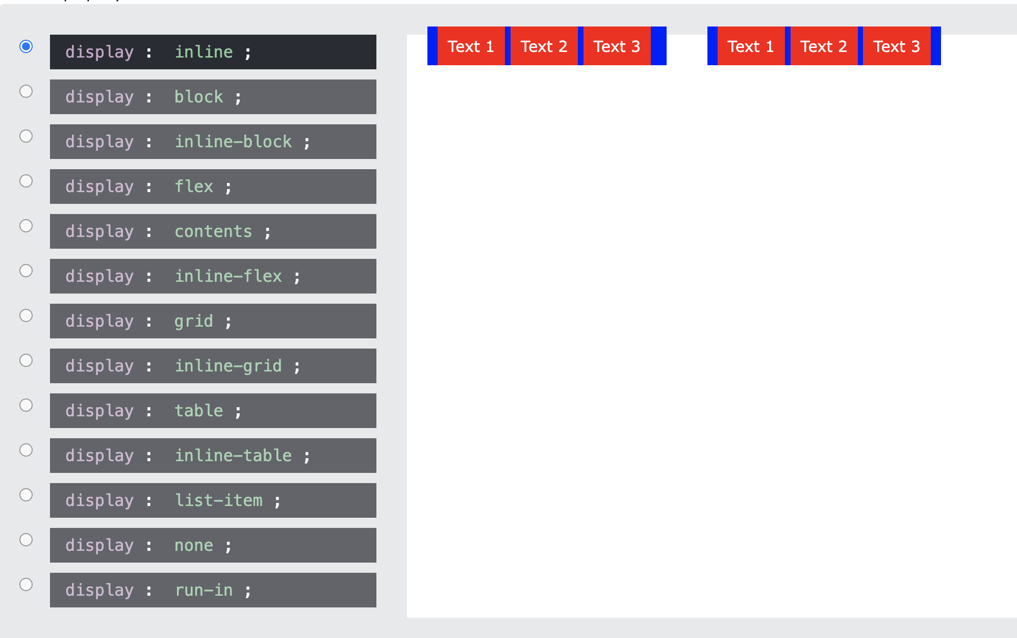 inline은 여백없이 딱 엘리먼트 본인의 자리만 차지하는 것을 볼 수 있다.