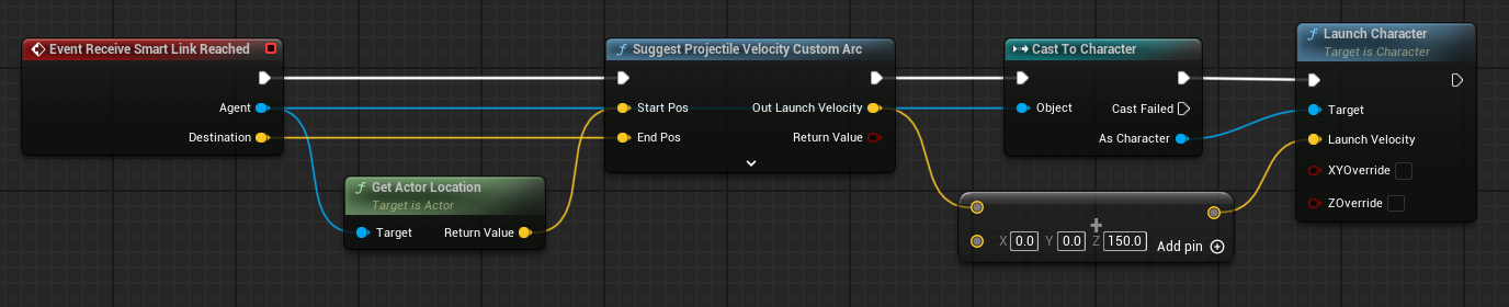 Suggest Projectile Velocity Custom Arc는 시작 위치, 목표 위치, 발사 각도, 중력 등을 고려해서 목표 지점에 도달할 수 있는 초기 발사 속도(velocity vector) 를 계산해주는 노드이다.