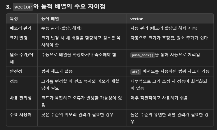 그런데 여기서 의문. 우리는 동적 배열이라는 것도 배웠는데 도대체 vector 와는 어떻게 다른 걸까