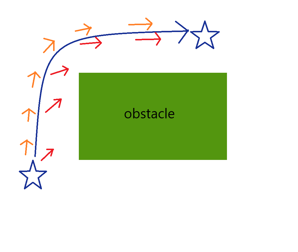 그러나 중간에 Obstacle 이 있게 되면 Path가 자연스럽게 꺾이게 되는데 AI는 목적지 만을 향해 Rotate가 되기 때문에 부자연스럽게 보임.