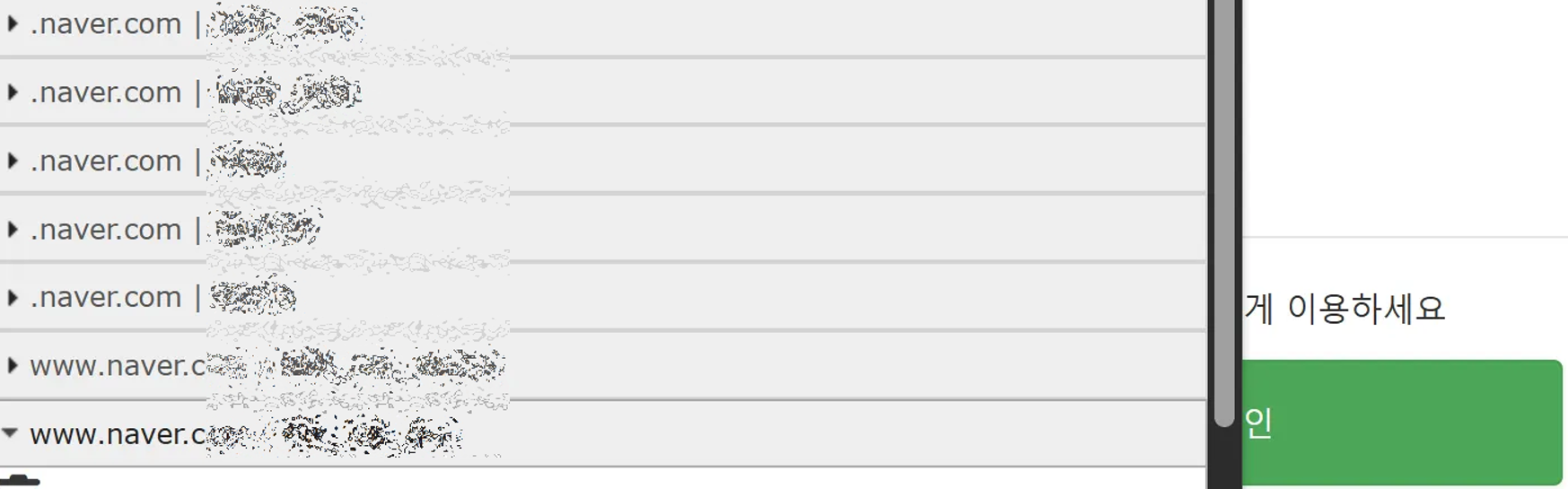 먼저 이미 네이버에 로그인된 웹브라우저의 값을 복사하고 새로운 브라우저를 시크릿모드로 네이버에 접속한다.