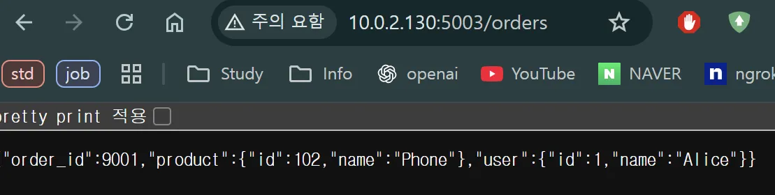 inspect 명령어는 각 컨테이너가 내부 네트워크에서 어떤 IP로 동작하고 있는지, 어떻게 서로 통신하는지를 확인하는 정보이며 MSA 구조에서 서비스 간 연동이 정상적으로 이루어지고 있음을 검증한다.