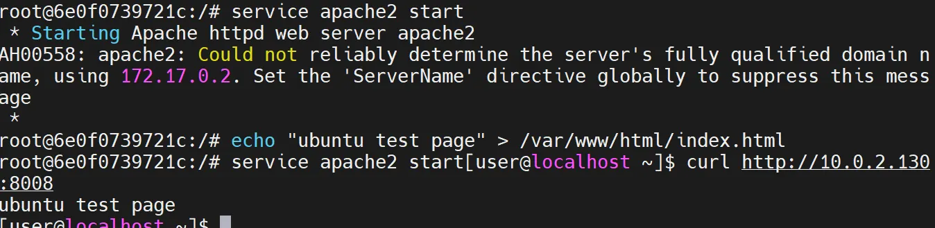[user@localhost ~]$ docker container run -it --name ubuntu_1 ubuntu /bin/bash