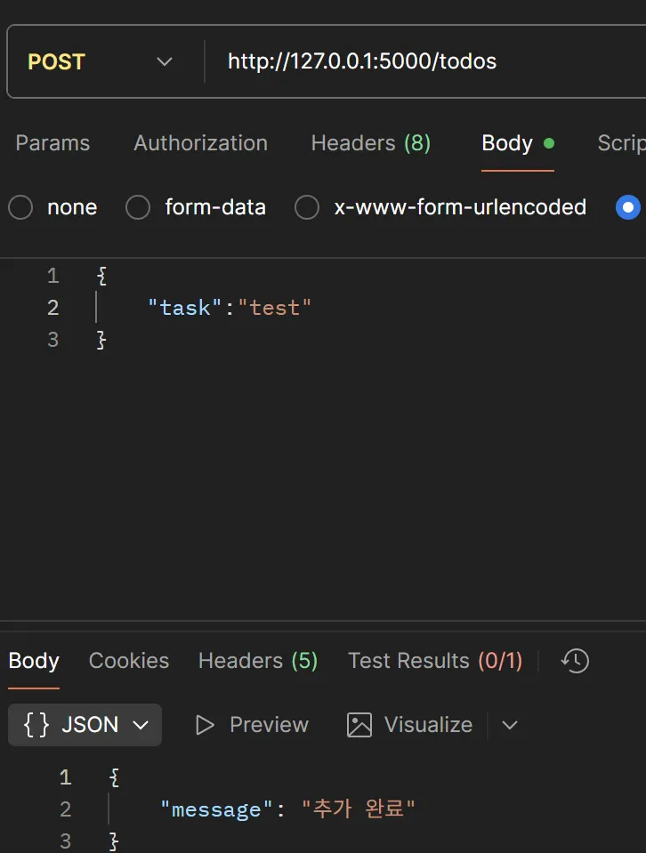 REST API는 브라우저에서 직접 테스트하기 어려운 경우가 많기 때문에, Postman과 같은 API 테스트 도구를 사용한다. GET 요청 테스트, POST 요청 테스트 등의 다양한 REST API 요청을 보낼 수 있으며, raw 포맷으로 파라미터를 넣을 수 있다. POST 요청의 Body를 JSON 형태로 직접 작성할 수 있다는 뜻이다.