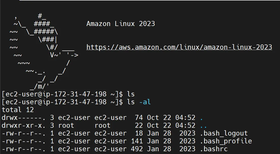 AWS내부에서 쉘을 열어서 아래의 명령어를 입력한다.