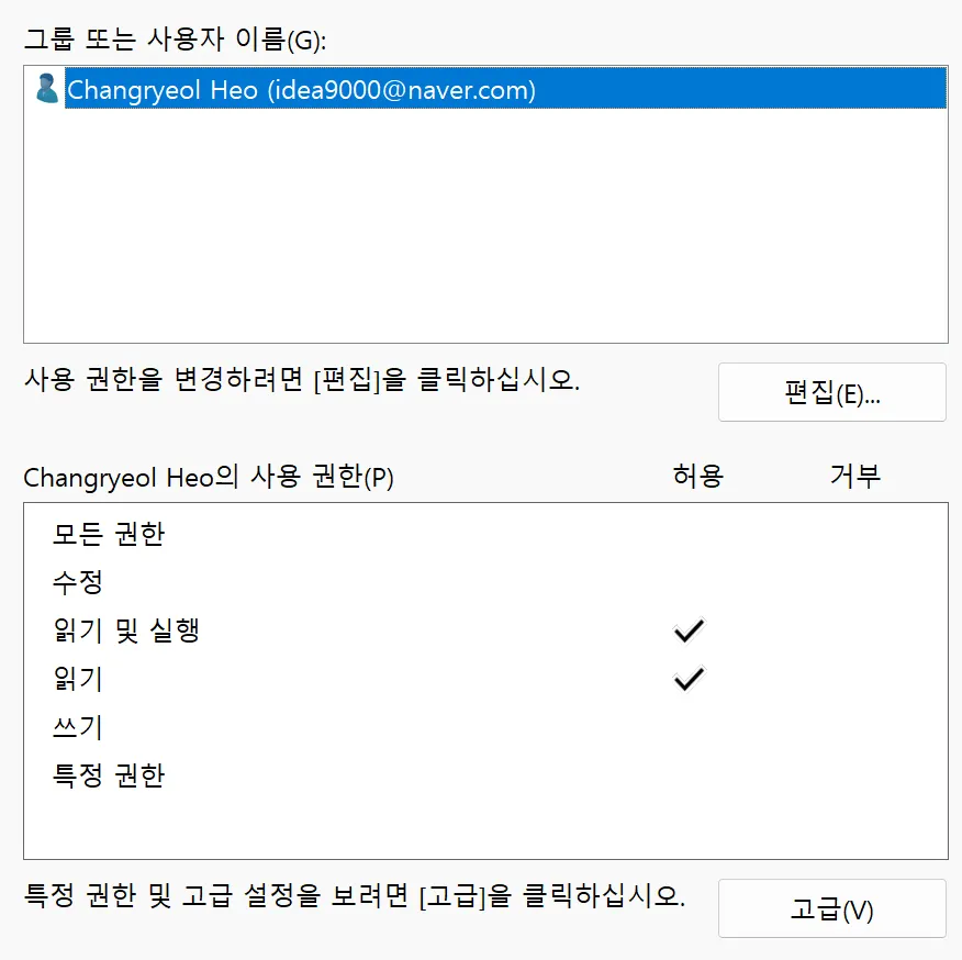 고급 → 상속 삭제 → 편집을 통해 사용자만 추가다운로드한 SSH 프라이빗 키는 절대 다른 사용자나 시스템 계정이 읽을 수 없어야 하기 때문이다.