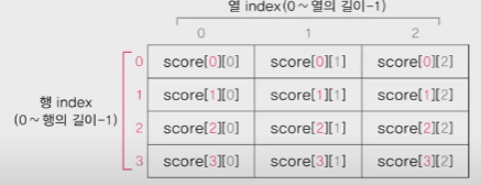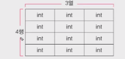 int[][] score = new int[4][3]; // 4행 3열의 2차원 배열을 생성한다.