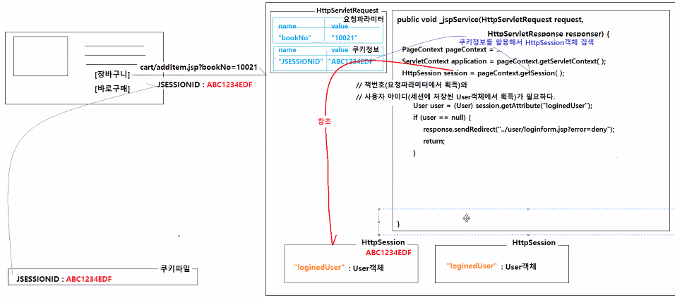 // CartItem 객체를 생성하고, 책번호와 사용자아이디를 저장한다.