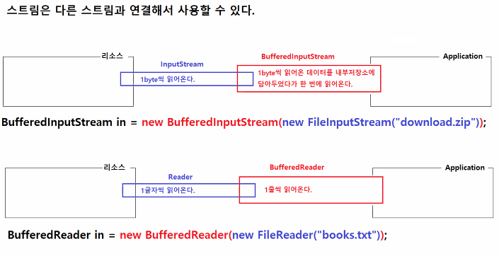 // InputStream나 Reader 객체를 획득(생성)했다는 것은 소스(리소스)로부터 데이터를 읽어올 준비가 되었다는 것이다.