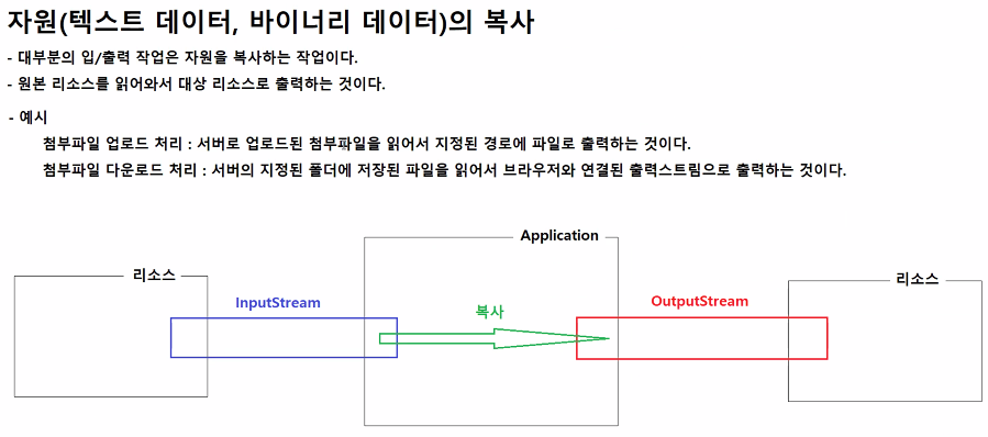 Ex) 첨부파일 업로드 처리 : 서버로 업로드된 첨부파일을 읽어서 지정된 경로에 파일로 출력하는 것이다.