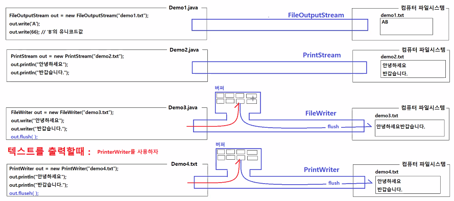 // OutputStream나 Writer 객체를 획득(생성)했다는 것은 대상(리소스)으로 데이터를 출력할 준비가 되었다는 것이다.