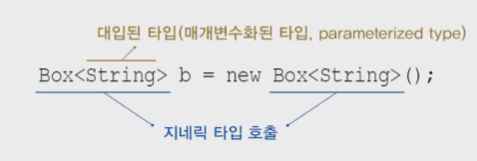 T : 타입변수 또는 타입 매개변수. (T는 타입 문자)