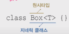 Box<T> : 지네릭 클래스. 'T의 Box'또는 'T Box'라고 읽는다.