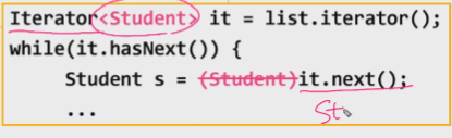 - 이제 next가 student를 반환하므로 타입이 일치하기 때문에 형변환이 필요없다.